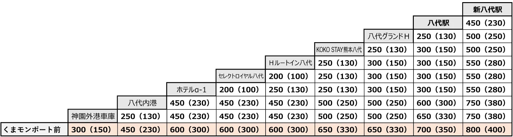 ※注 空港発最終便は、到着便遅延対応の為、八代市内間のご乗車は出来ません。