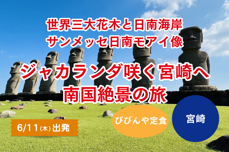 ⑮世界三大花木ジャガランダと日南海岸のモアイ像!サンメッセ日南