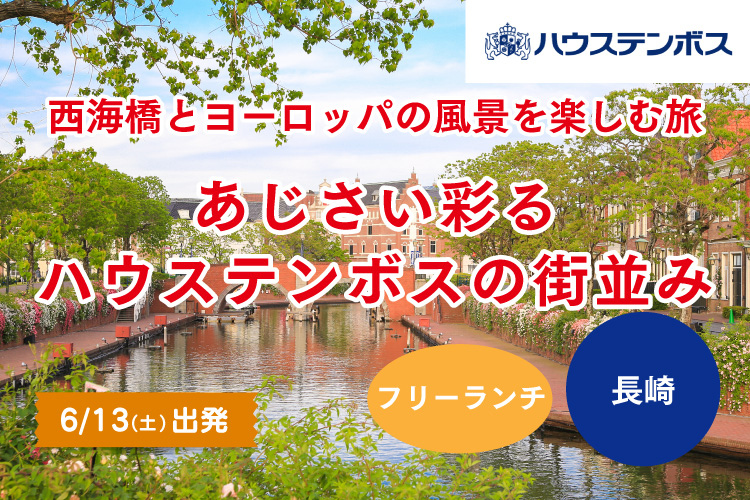 ⑯懐かしの西海橋とハウステンボスのヨーロッパの街並みをあじさいが彩るツアー